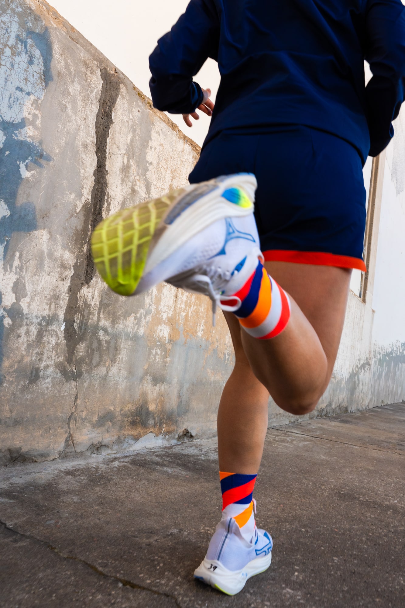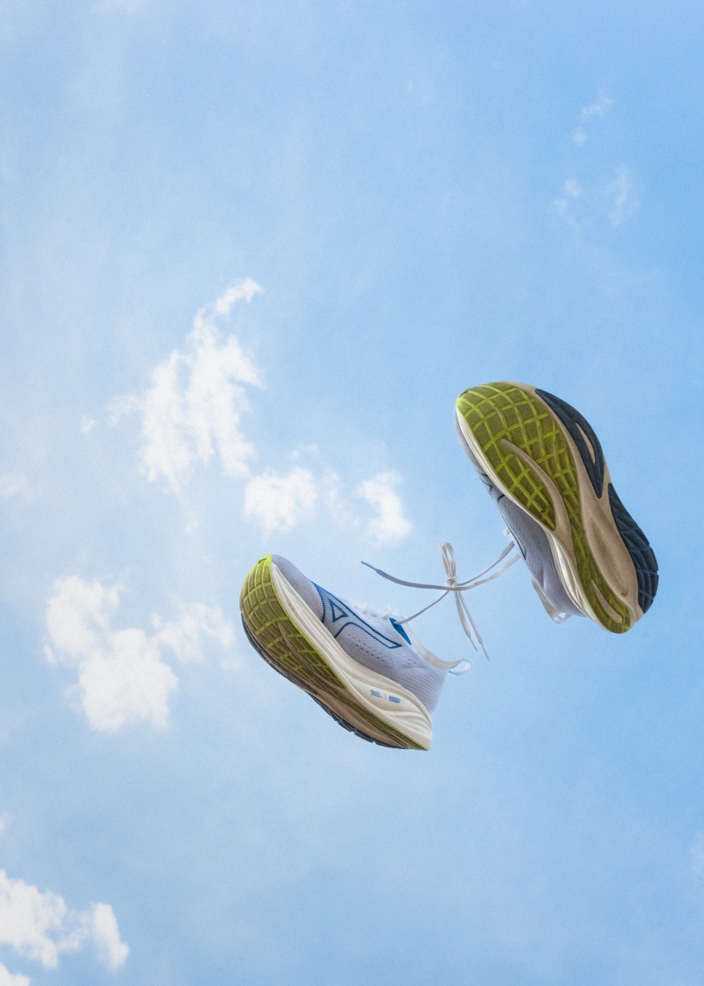 Mizuno a également travaillé en profondeur sur l’upper. La tige technique respirante adopte une construction plus épurée et plus ajustée, avec un accent particulier mis sur le maintien du médio-pied et du talon. Le contrefort arrière est renforcé et associé à un col plus rembourré, améliorant nettement la stabilité à l’atterrissage. Autre point fort en matière d’écoresponsabilité : 90% des matériaux de la tige sont recyclés, un bel effort de la marque japonaise dans un contexte où la responsabilité environnementale devient essentielle dans l’industrie du running.
