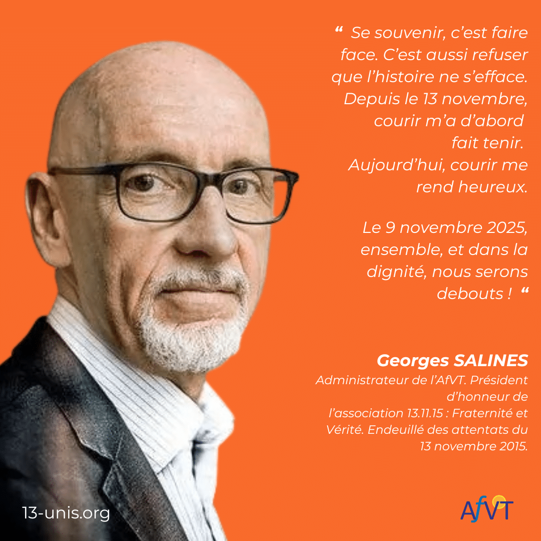 Plus qu’un simple événement sportif, ce sera avant tout un moment de rassemblement citoyen entre familles, victimes et grand public, dans un esprit de solidarité et de mémoire partagée. Des porte-paroles incarneront cette démarche, à l’image de Georges Saline, auteur de Il nous reste les mots (coécrit avec le père de l’un des assaillants, Azdyne Amimour). Coureur passionné, il a perdu sa fille de 28 ans au Bataclan et a déjà mobilisé une dizaine de licenciés de son club du 94 pour participer à la course.