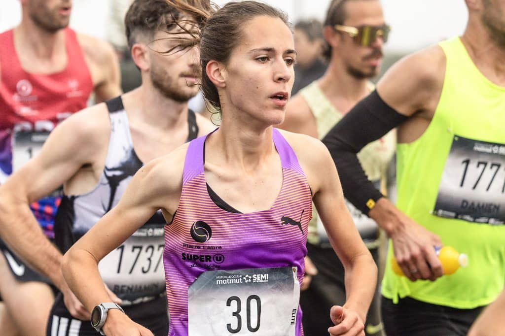 Quelques minutes avant, le semi-marathon a tenu également toutes ses promesses. Favorite du Semi-marathon, Mélody Julien, sélectionnée pour les JO de Paris 2024, avait annoncé partir sur les bases du record de France de la distance en 1h08’20. Une allure que la marathonienne a réussi à tenir jusqu’au 10e kilomètre, avant de ralentir. Même si elle n’a pas atteint son objectif, la native de Castres a survolé la course, s’imposant avec autorité en 1h09’14 (nouvelle référence personnelle, ancienne, 1h10’26 il y a quelques semaines à Vannes). Inès Hamoudi termine loin derrière en 1h13’16, suivie ensuite par Justine Chagnaud en 1h15’48.